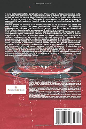 Il volume analizza il controverso tema della COLPA MEDICA attraverso lo studio delle più importanti pronunce della SUPREMA CORTE DI CASSAZIONE degli ultimi due anni (2016 – 2017), in modo da consentire, sia al giurista che al sanitario, un approfondimento contestualmente teorico e pratico dei principi di diritto che disciplinano la materia e delle decisioni giurisprudenziali adottate nella variegata casistica delle lesioni e degli omicidi colposi in ambito medico. Edizione Gennaio 2018 – Collana: Giurisprudenza pratica – AmbienteDiritto.it – Editore. All’interno il link per avere sempre il testo vigente della LEGGE 8 marzo 2017, n. 24, recante “Disposizioni in materia di sicurezza delle cure e della persona assistita, nonché in materia di responsabilità professionale degli esercenti le professioni sanitarie” (G.U. 17 marzo 2017, n. 64), (cd. Legge Gelli). Aggiornamenti On Line su:AmbienteDiritto.it – Sezione Giurisprudenza – Diritto Sanitario.